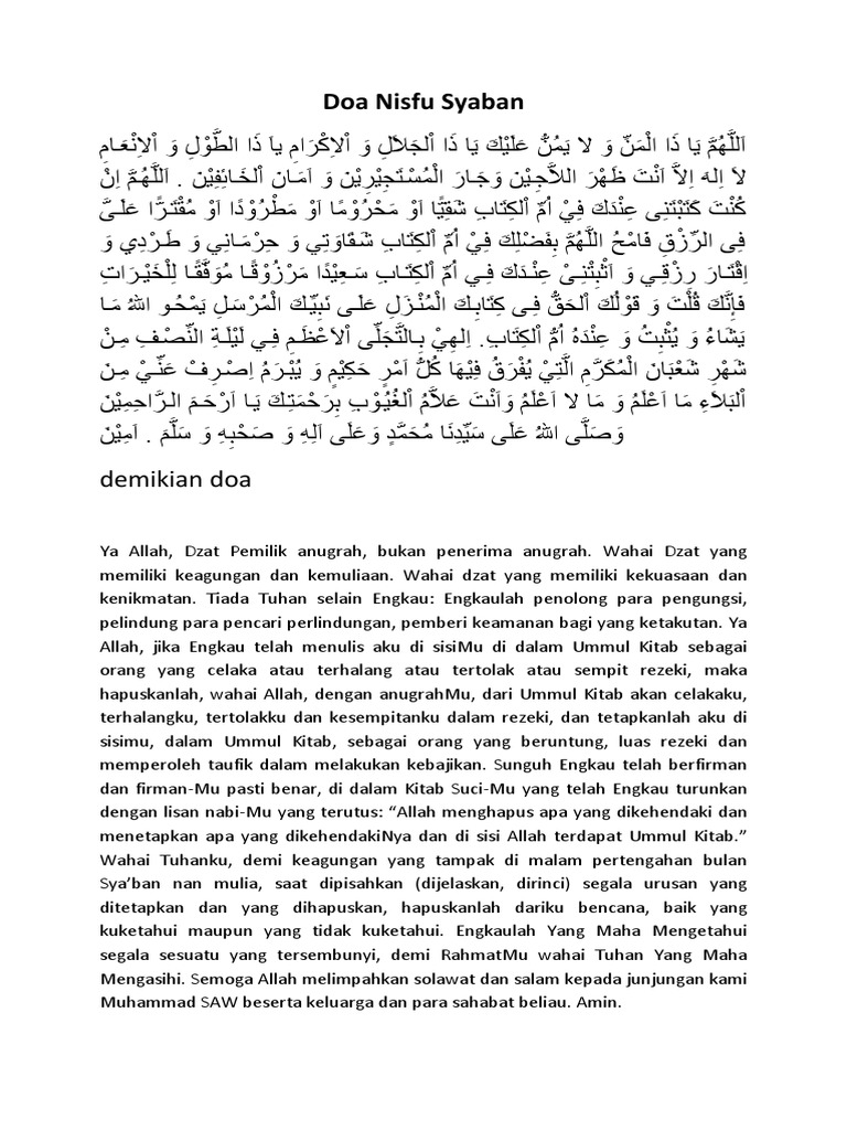 Doa Nisfu SyaBan Download as Word Doc doc docx PDF File pdf Text File txt or read online. If you are author or own the copyright of this book please. Uploaded by chandra tarigan.